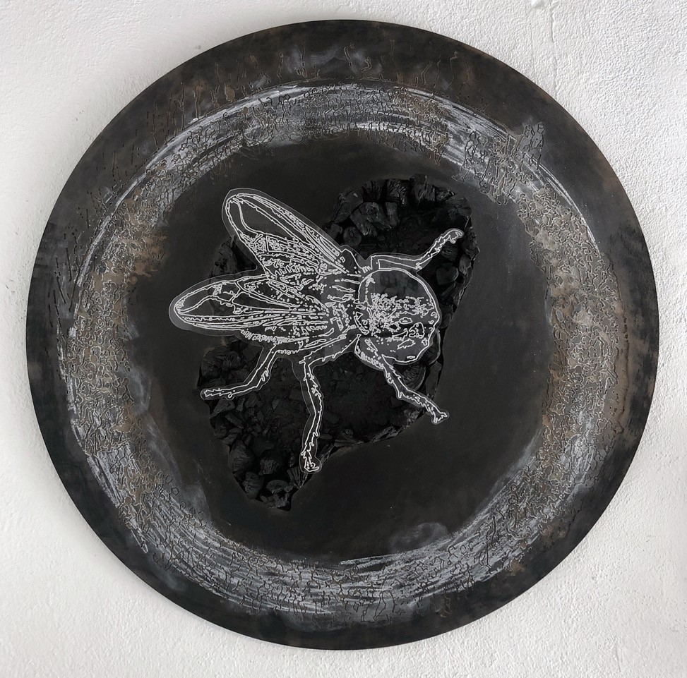 Mixed technique. Charcoal, painting/ wood and engraving on plastic. 41x 41 inch ( 105 x 105 cm each)